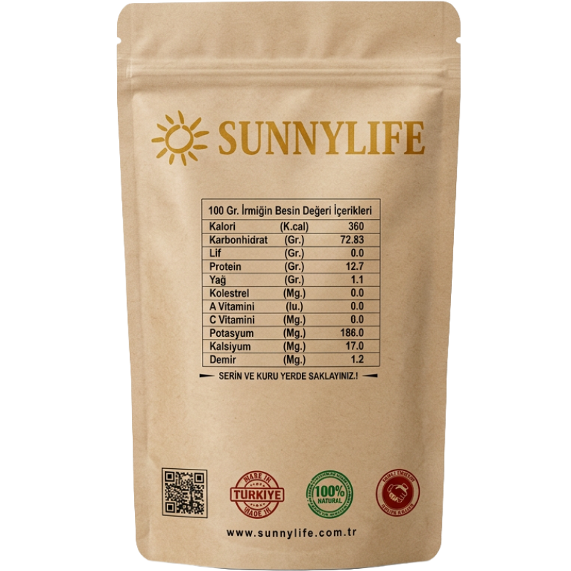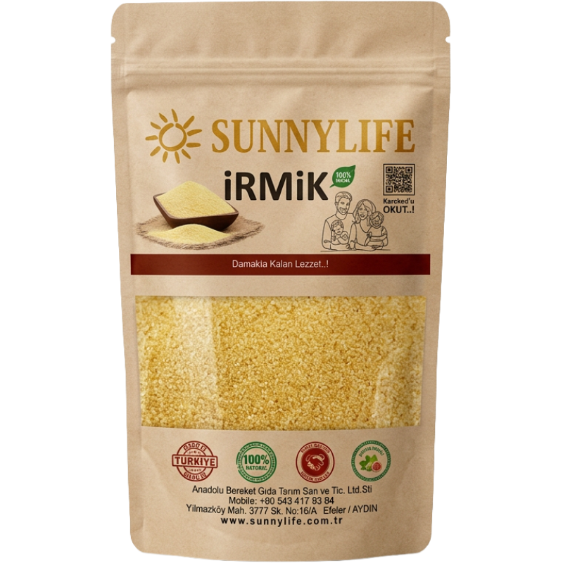 İrmik, sert durum buğdayından elde edilen kaba öğütülmüş tahıl ürünüdür. İrmik helvası, irmik tatlısı ve irmik çorbası başta olmak üzere fırıncılıkta ekmek ve pasta hamurlarına katkı maddesi olarak da kullanılır. Düşük GI değeri, yüksek protein içeriği ve B vitamini profiliyle besleyici bir karbonhidrat kaynağıdır.